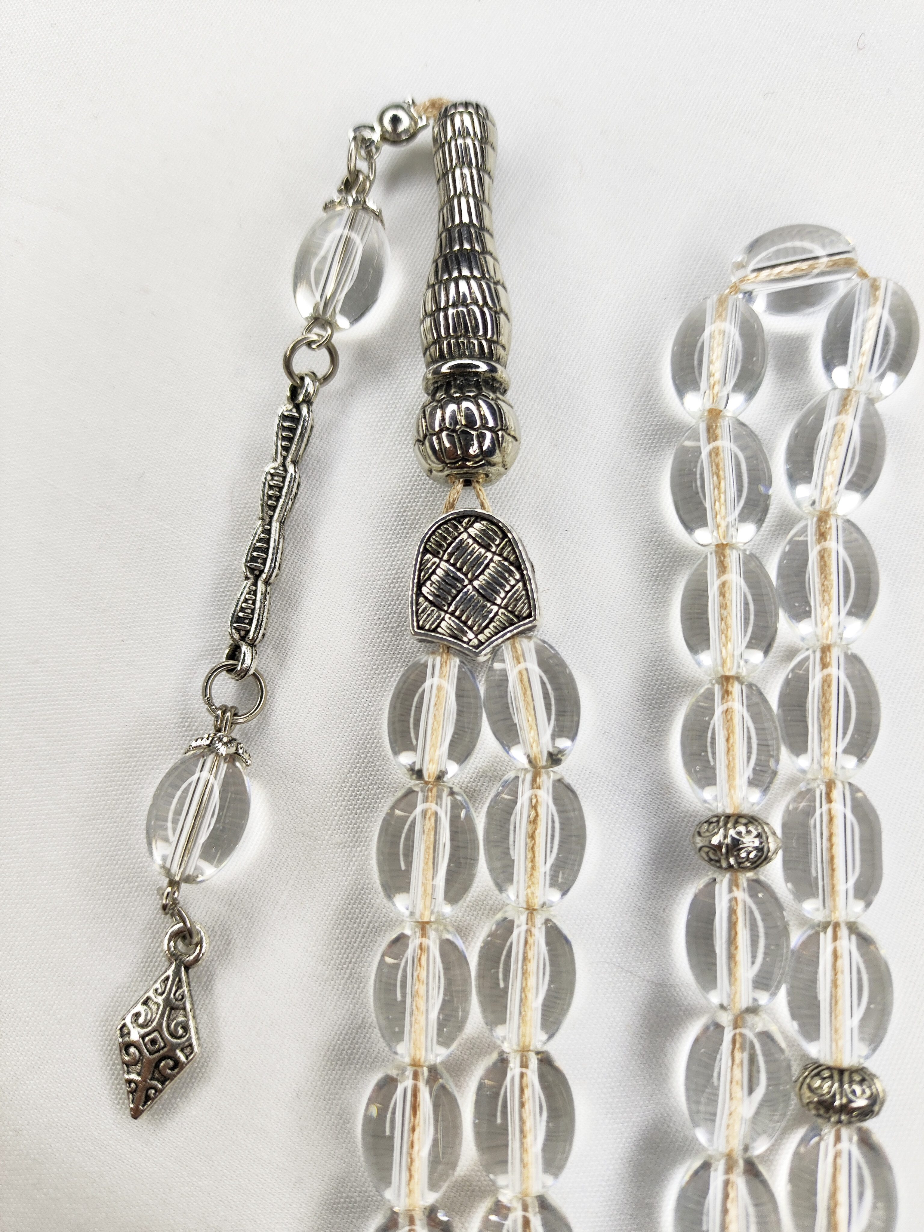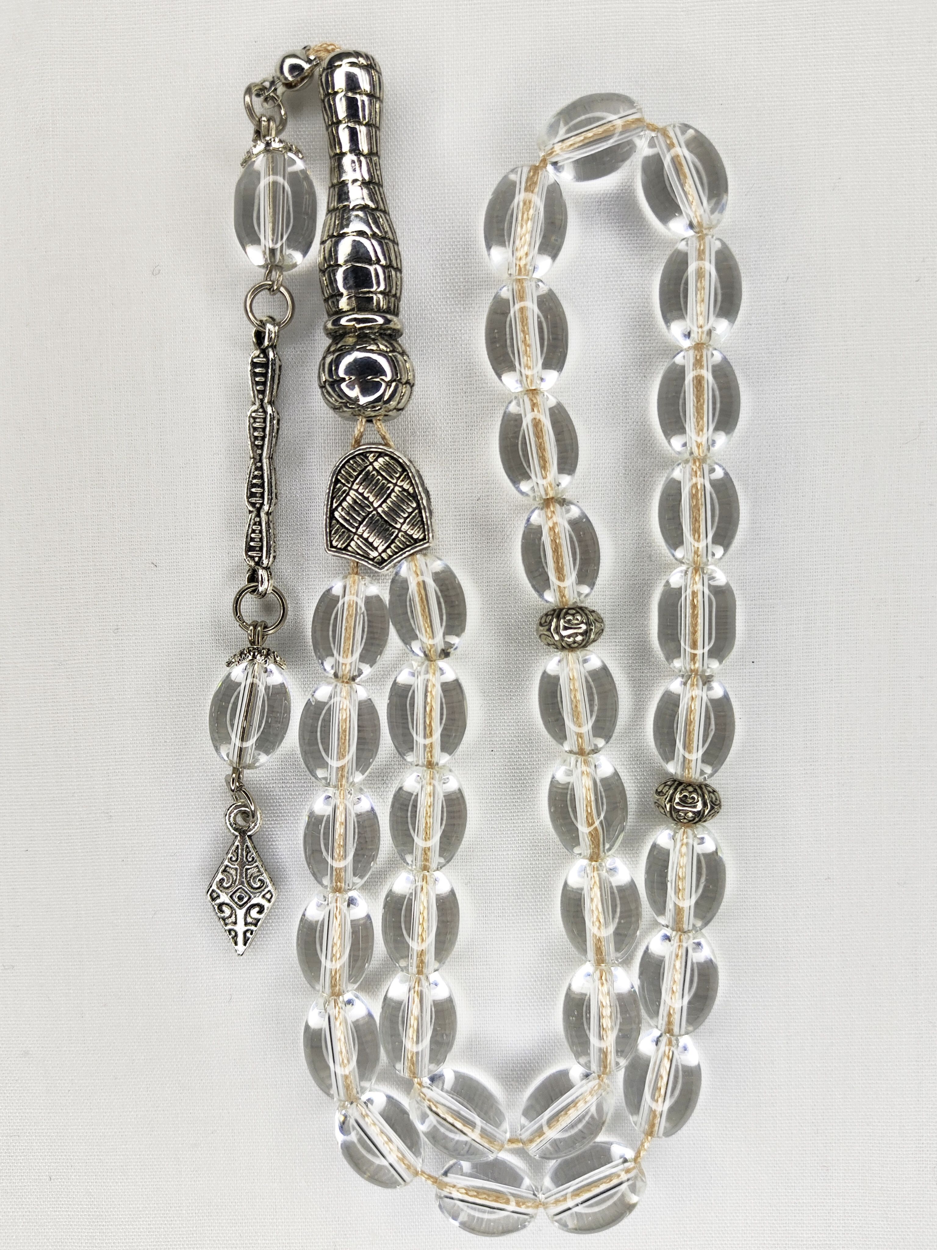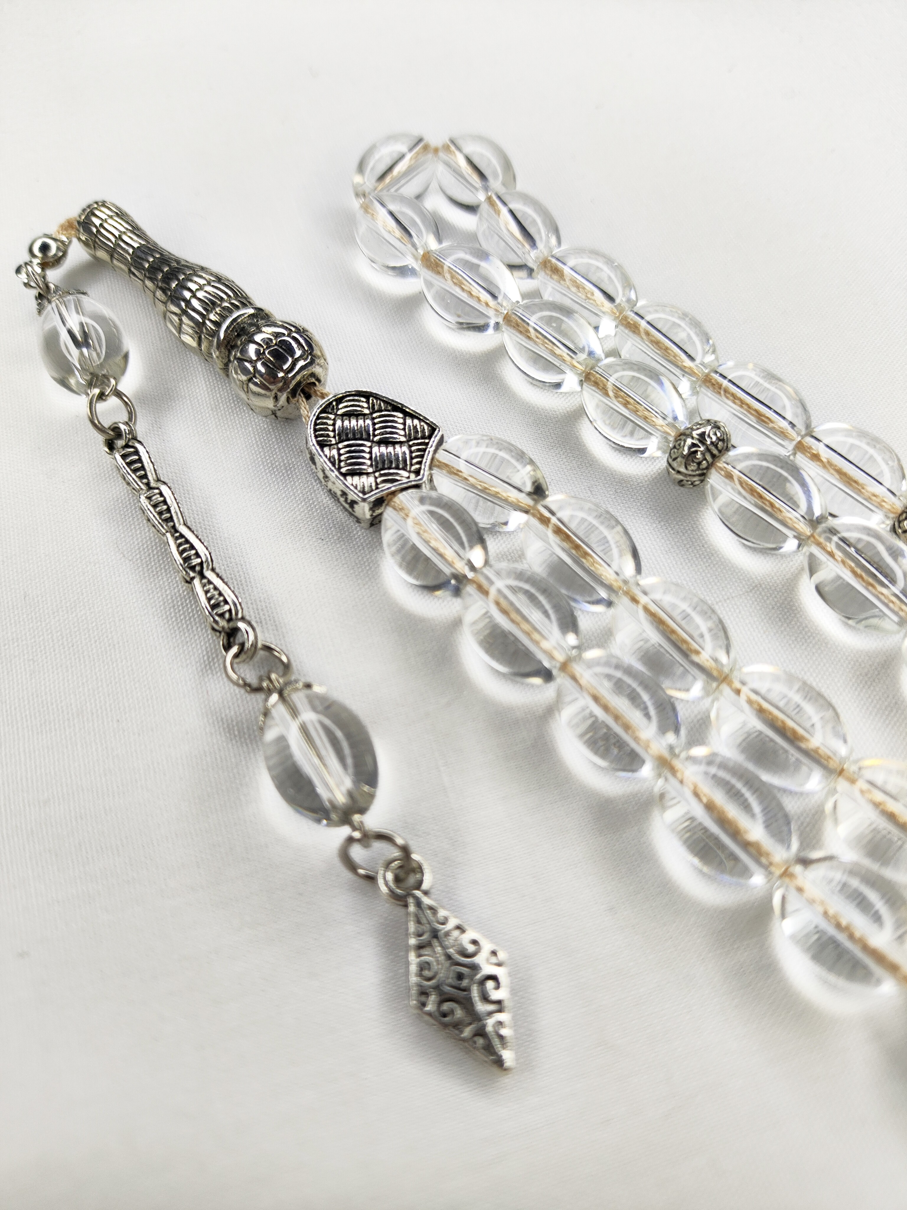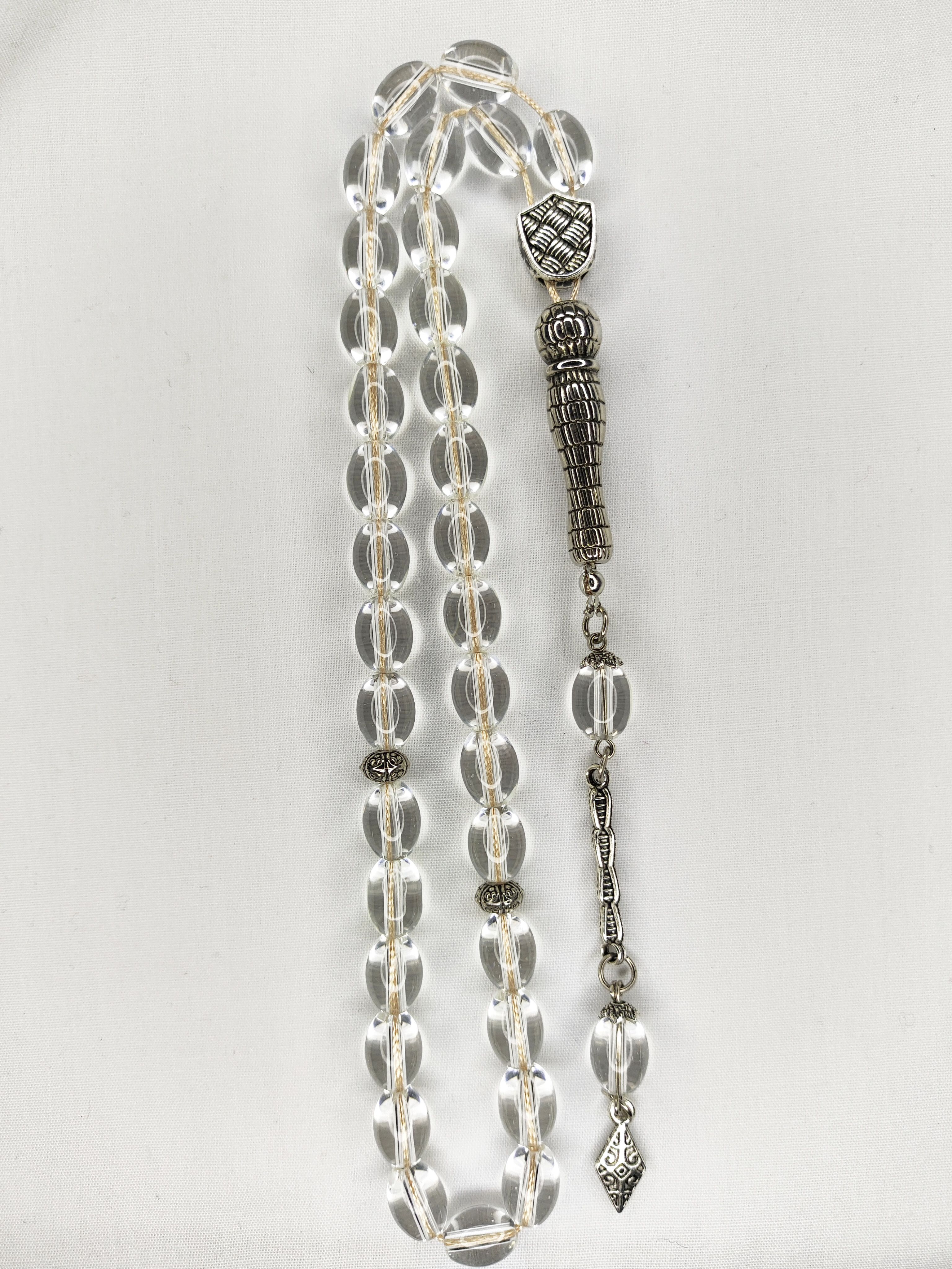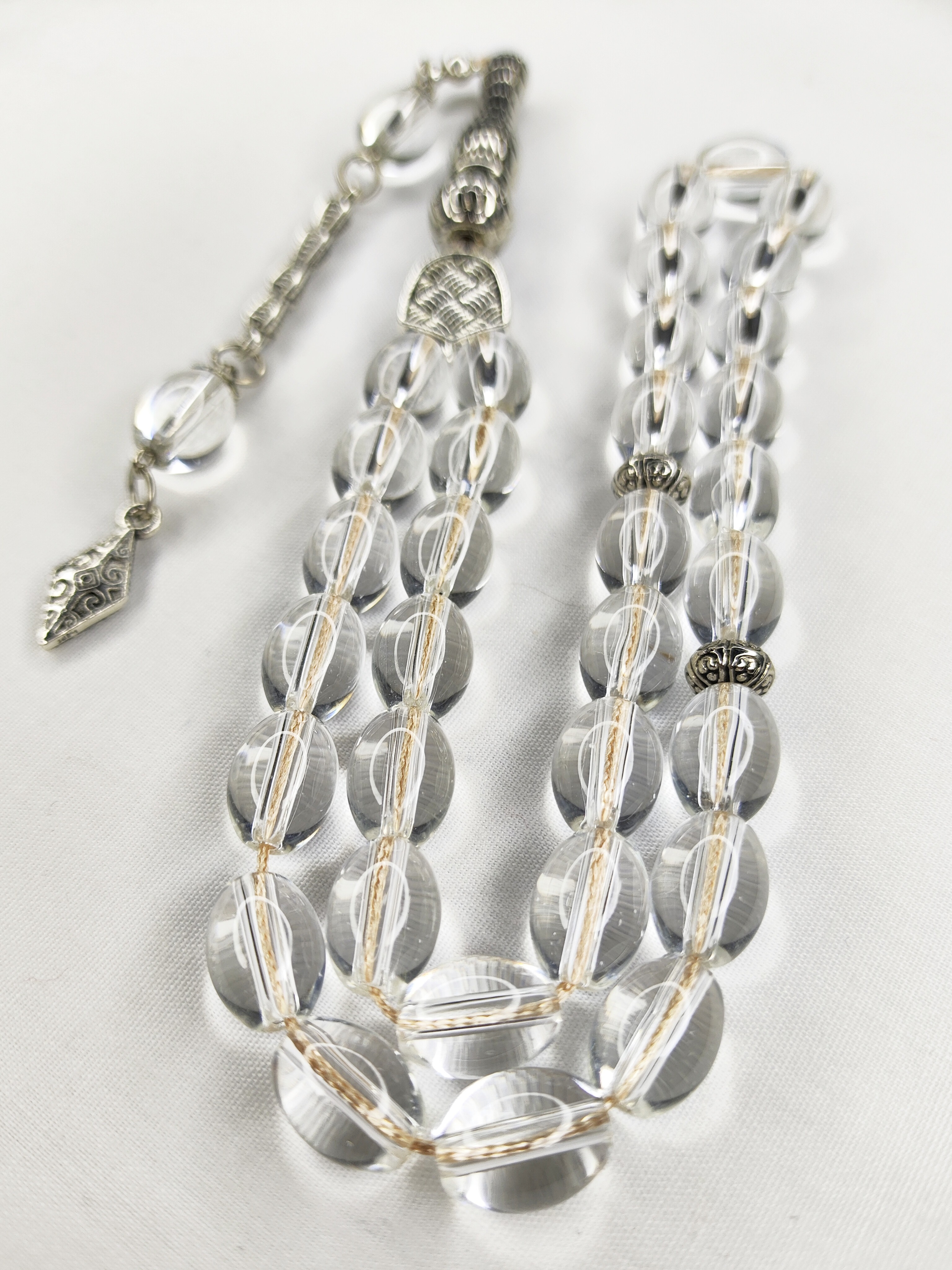 تسبیح شیشه‌ای 33عددی رنگ شیشه‌ای شفاف تراش هلی خوشدست
