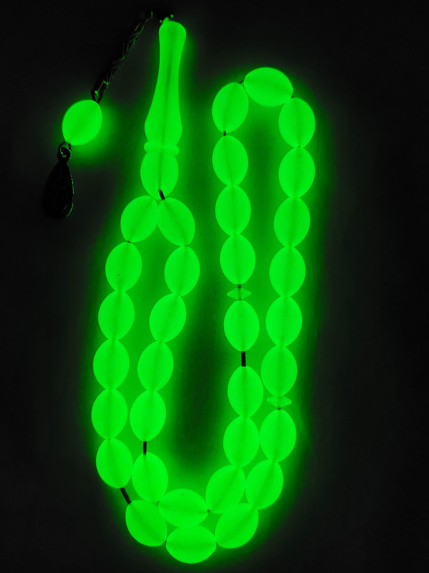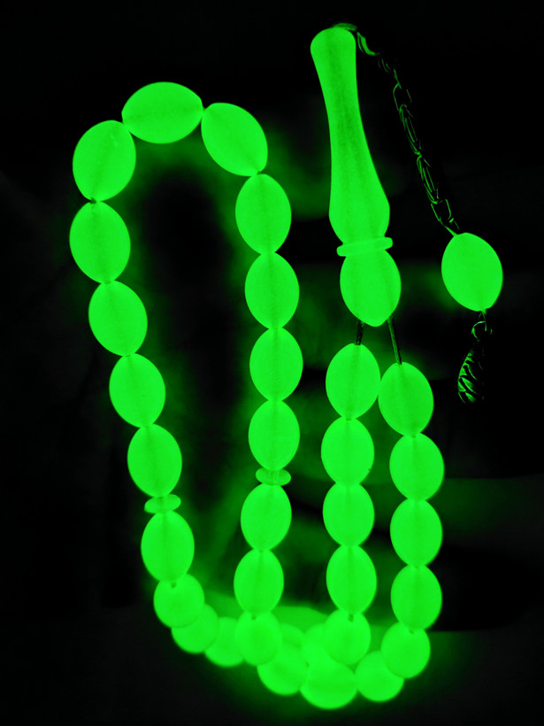 این تسبیح در روشنایی شارژ میشه و در تاریکی به رنگ سبز در میاد و از خودش نور پخش میکنه