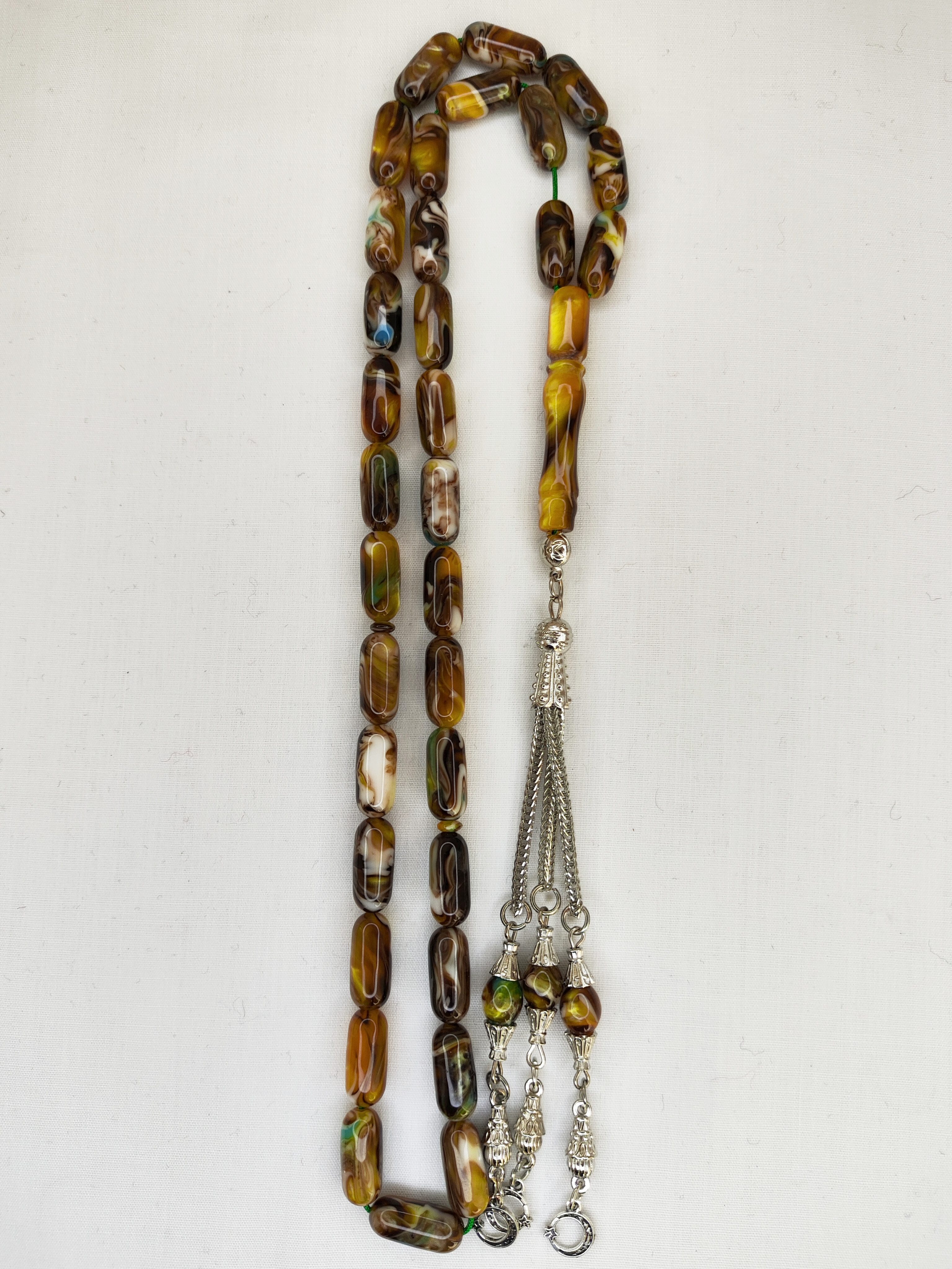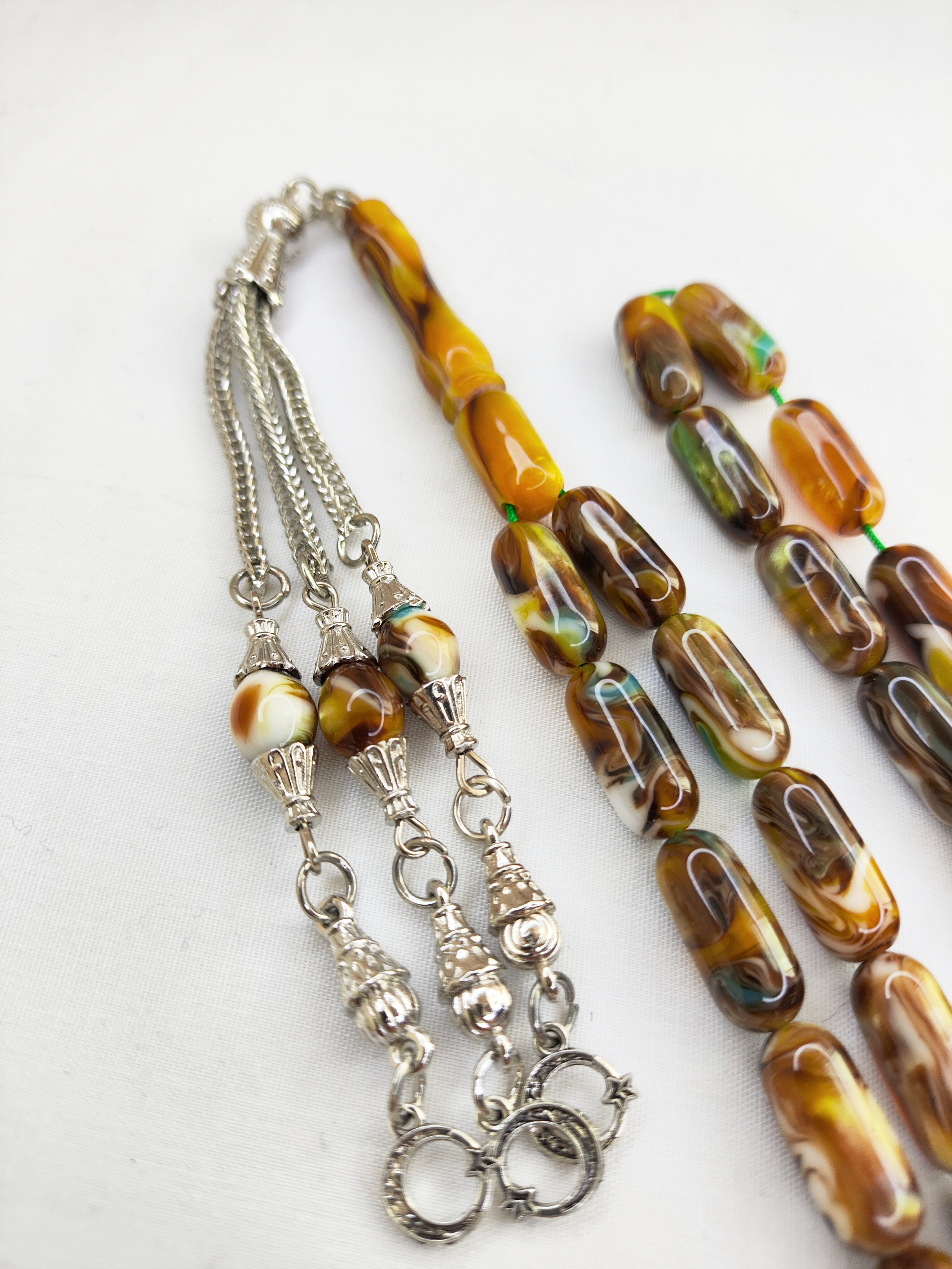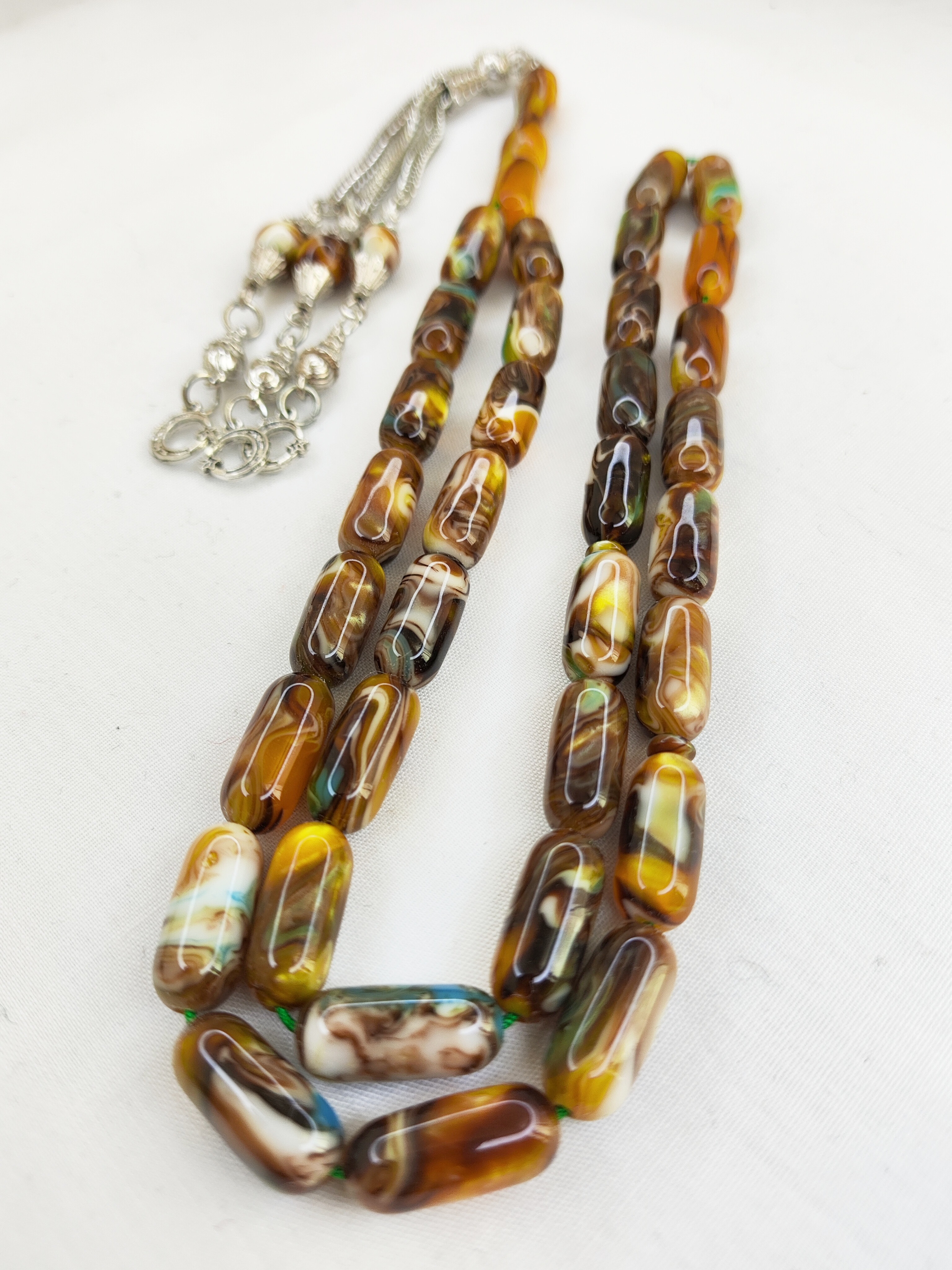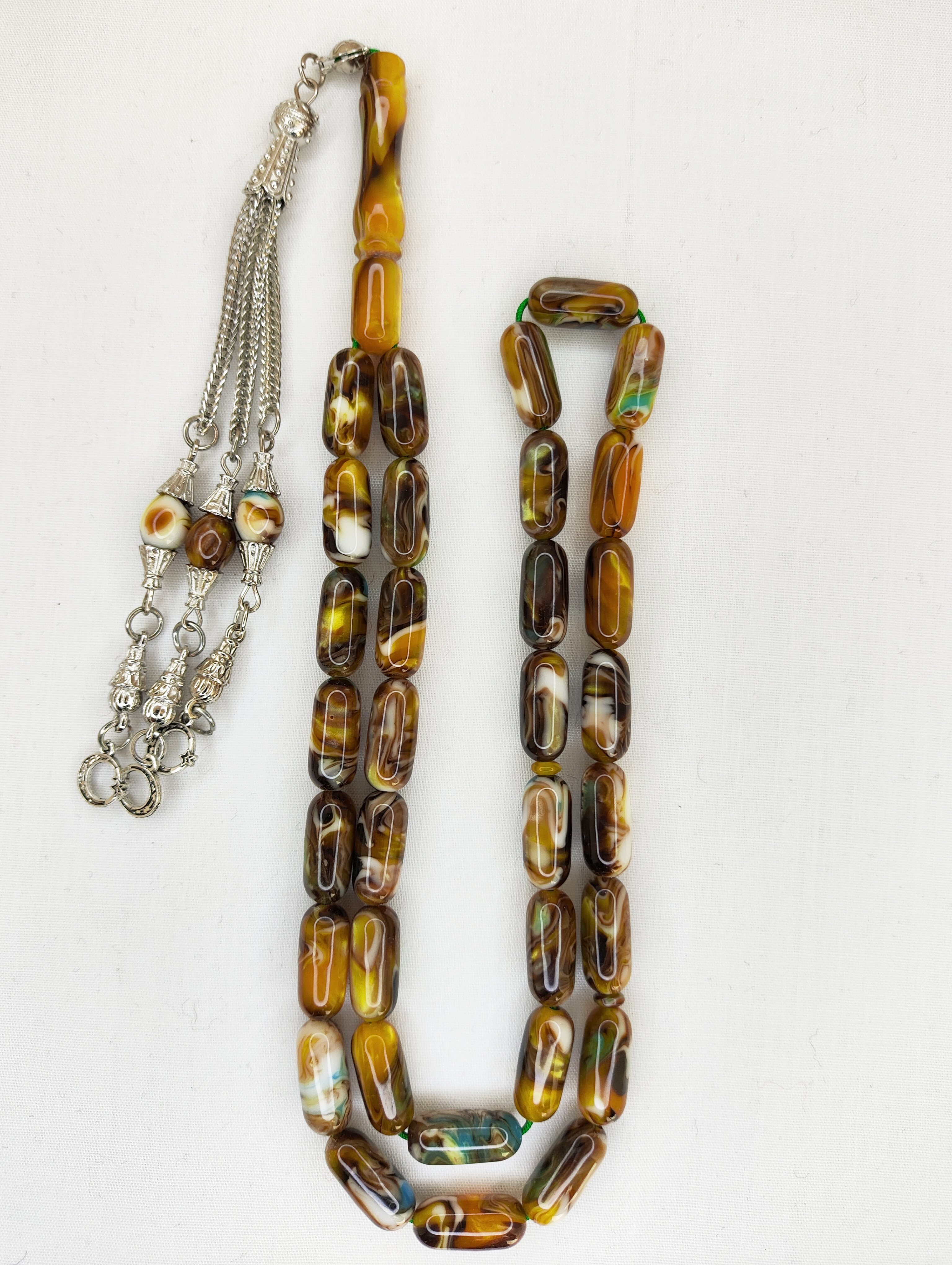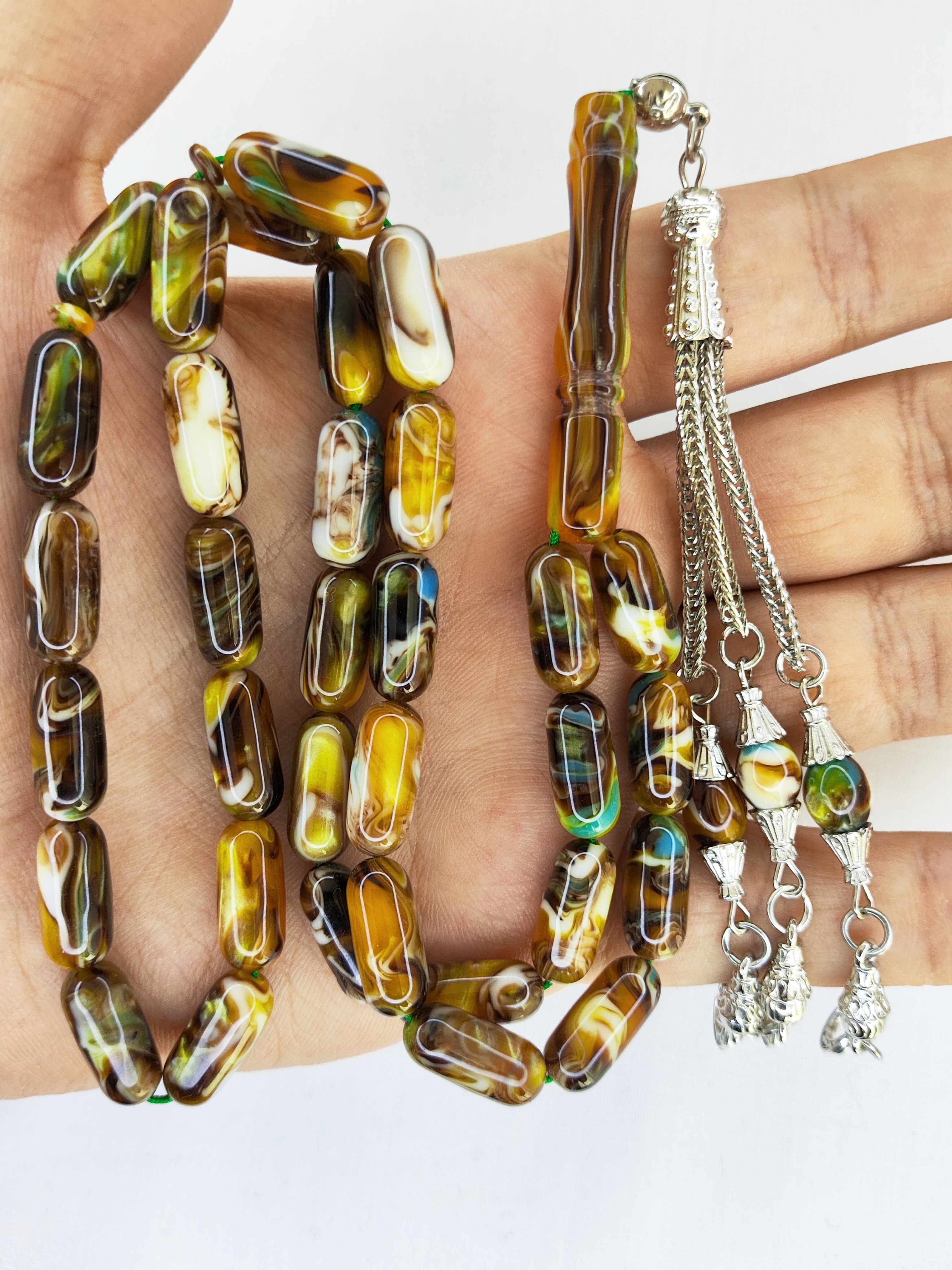 تسبیح کهربا 33عددی رنگ مولتی کالر تراش کپسولی خوشدست