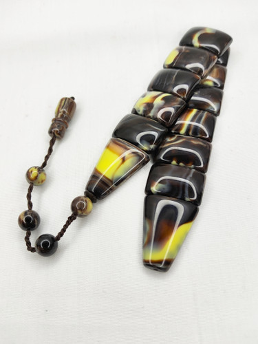 تسبیح کهربا رگه دار قهوهای رنگ تراش استانبولی زیا و خوشدست