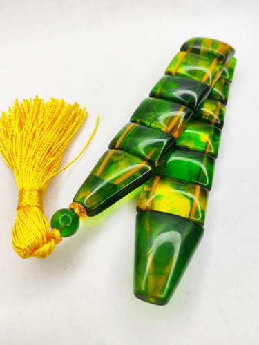 تسبیح سندلوس 33عددی تراش کسمه (قیچی بر) رنگ زرد سیستم دار