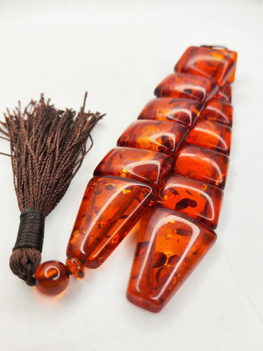 تسبیح زازا کهربا پرچمی زیبا و خوشدست همراه منگوله ابریشمی