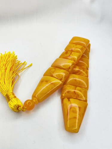 تسبیح کهربا رگه دار 33عددی رنگ زرد کاراملی خوشدست و فاخر همراه بافت شکیل