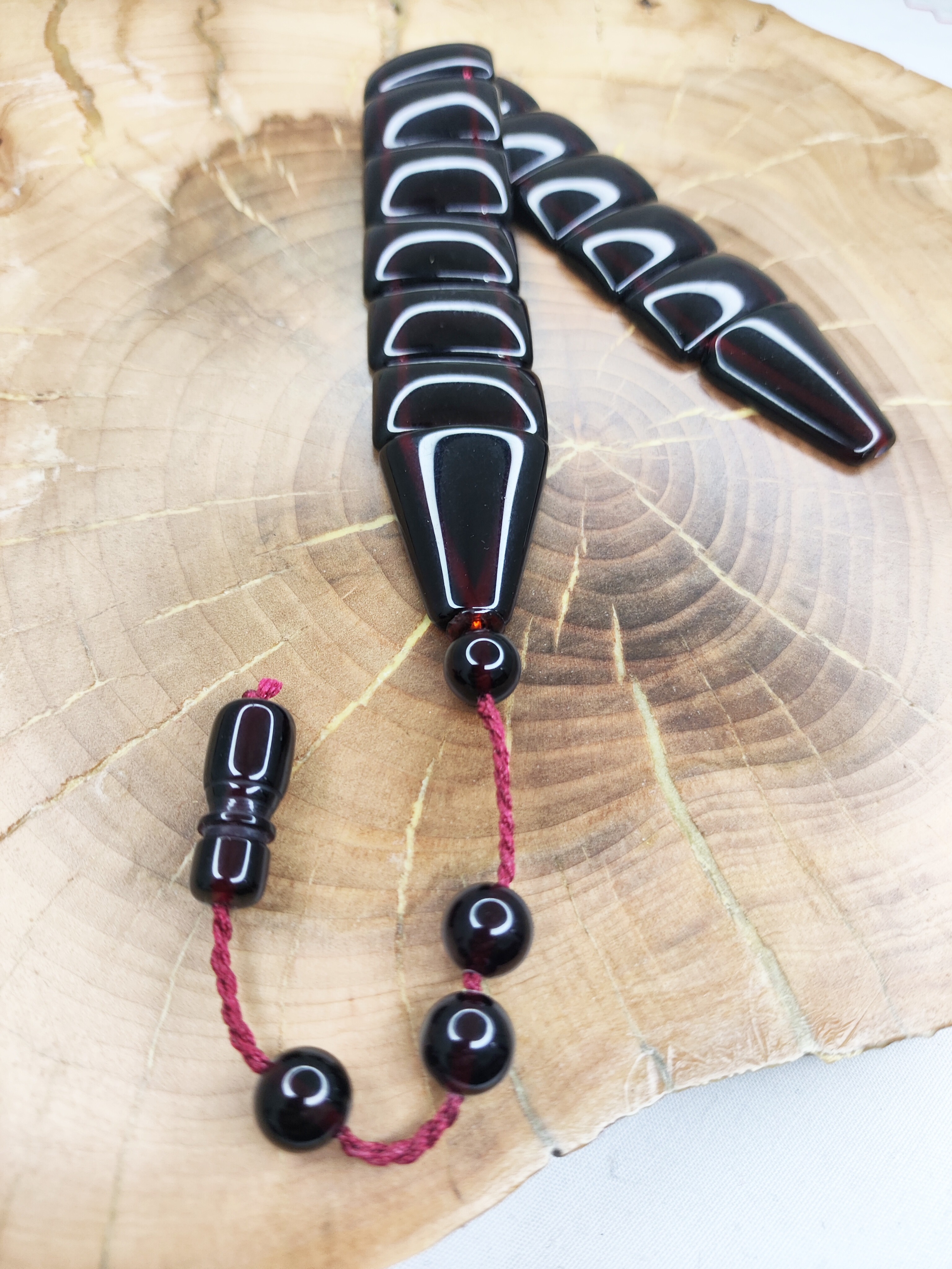 تسبیح زازا کهربا 11عددی رنگ شرابی دنباله دار خوشدست و زیبا