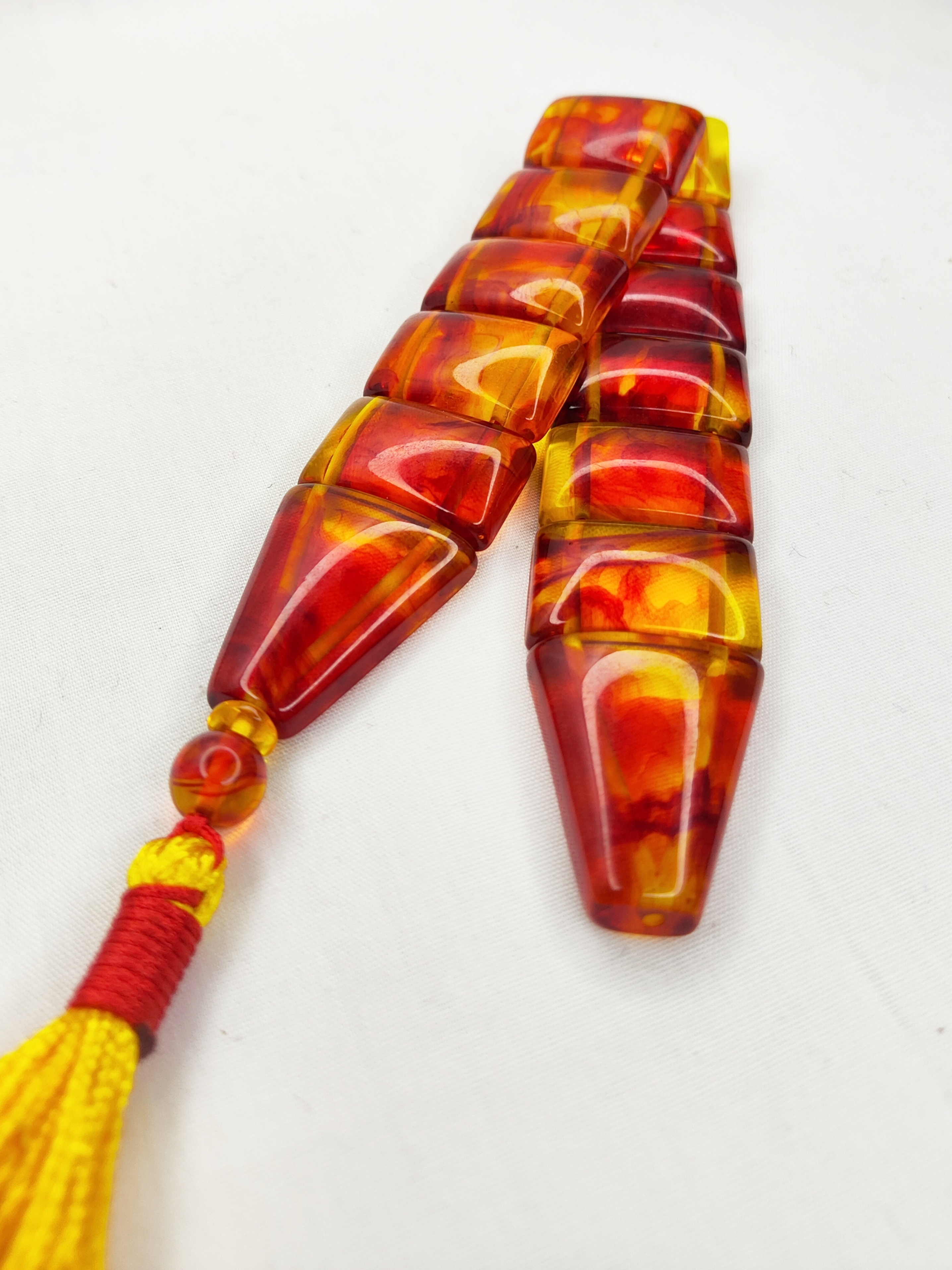 تسبیح زازا کهربا پرچمی رنگ آتشی خوشدست وزیبا همراه منگوله ابریشمی