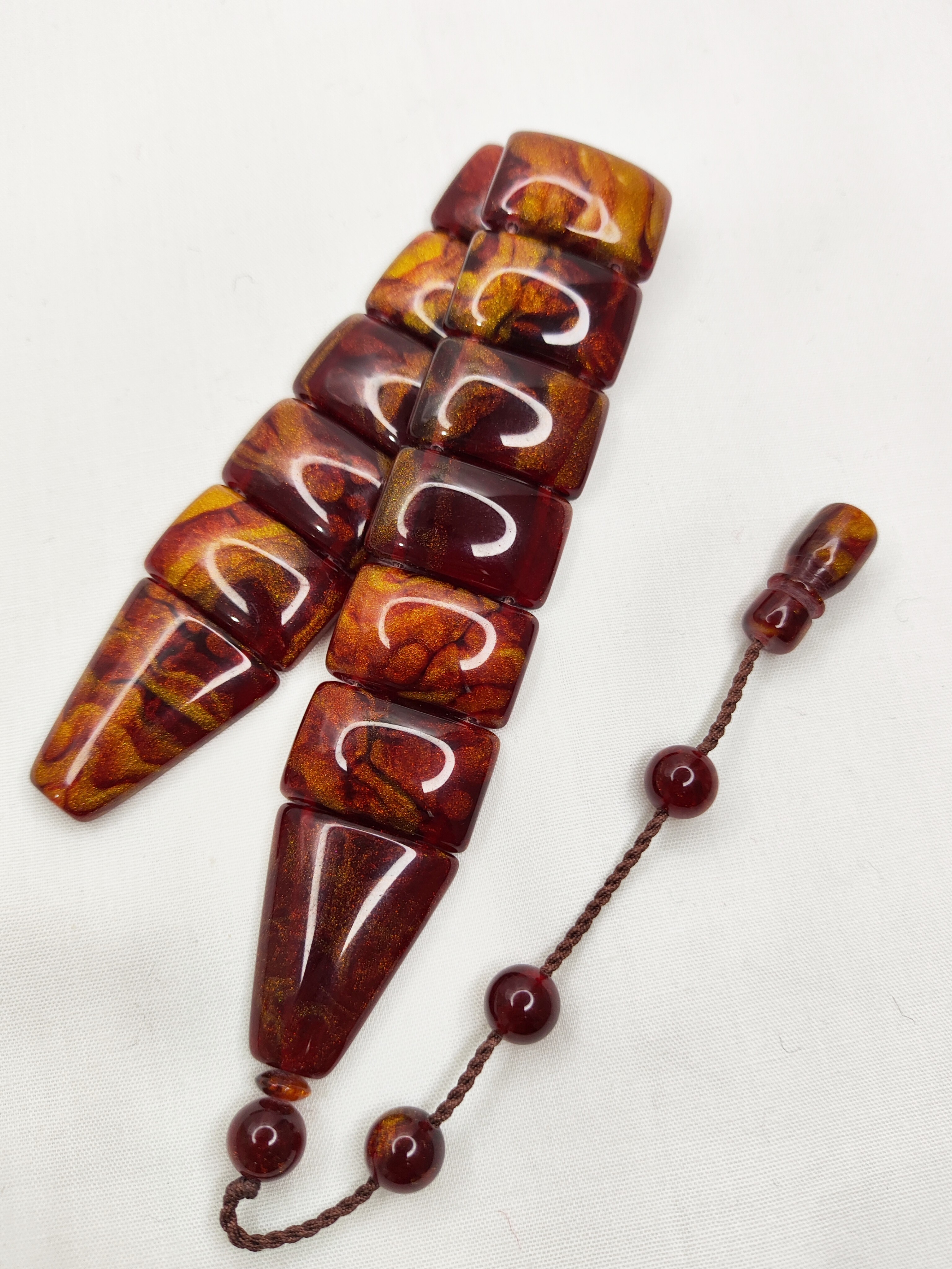 تسبیح کهربا رگه دار 33عددی رنگ آجری لوکس و زیبا همراه بافت شکیل