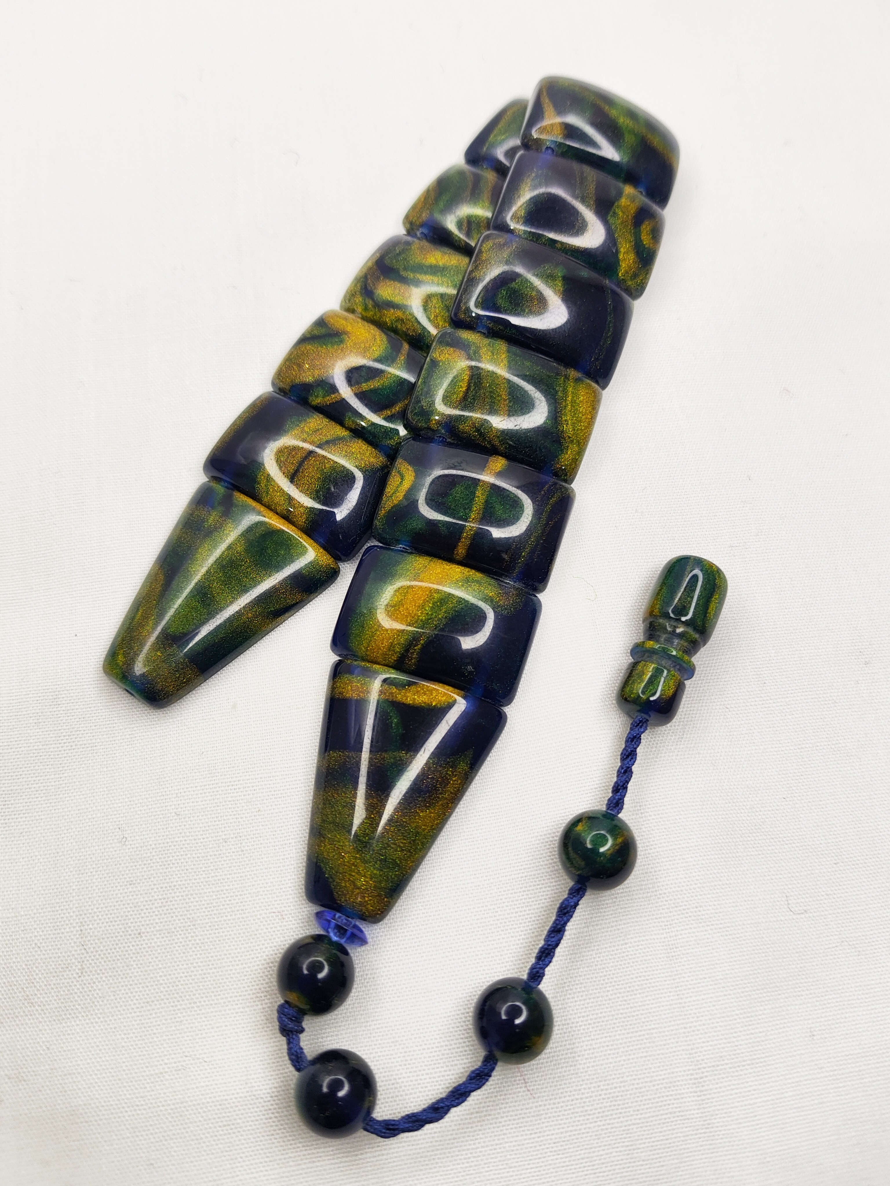 ناموجودتسبیح زازا کهربا زرافشان رنگ آبی کهکشانی زیبا و خوشدست